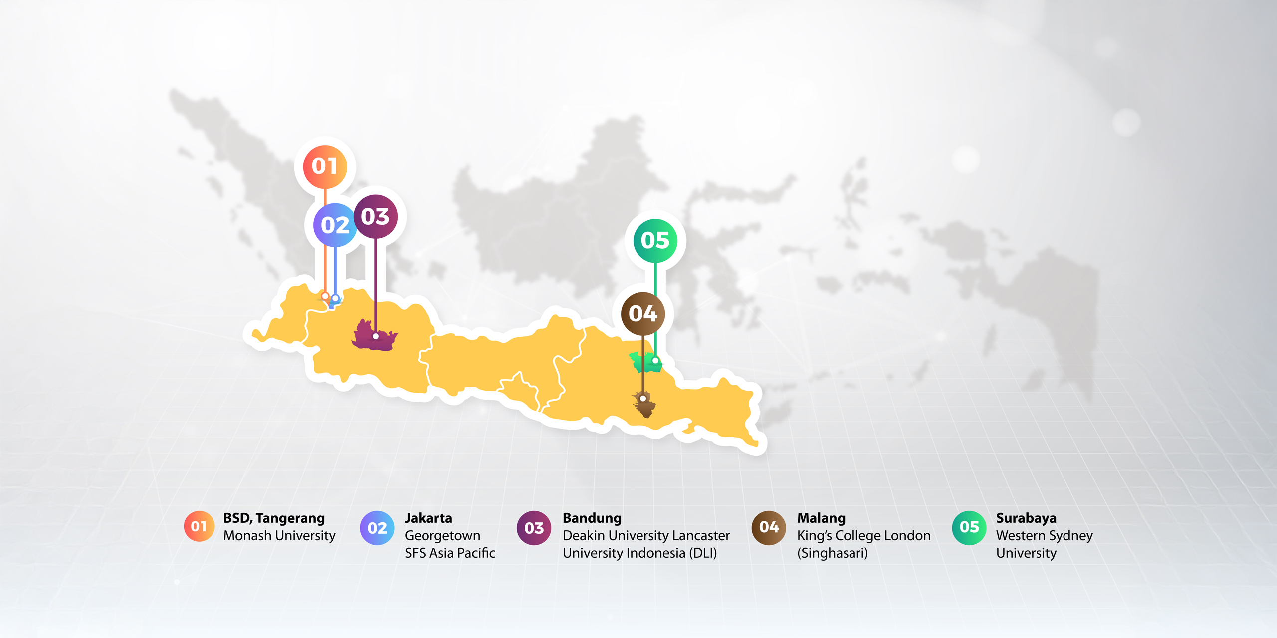 In 2021, the Indonesian Government implemented significant policy reforms to attract foreign universities to establish operations in Indonesia, including allowing 100% foreign ownership of higher education institutions. Indonesia has now seen the establishment of 5 IBC’S under 6 issued licences (Deakin University / Lancaster University, Georgetown University, Monash University, King’s College London & Western Sydney University).